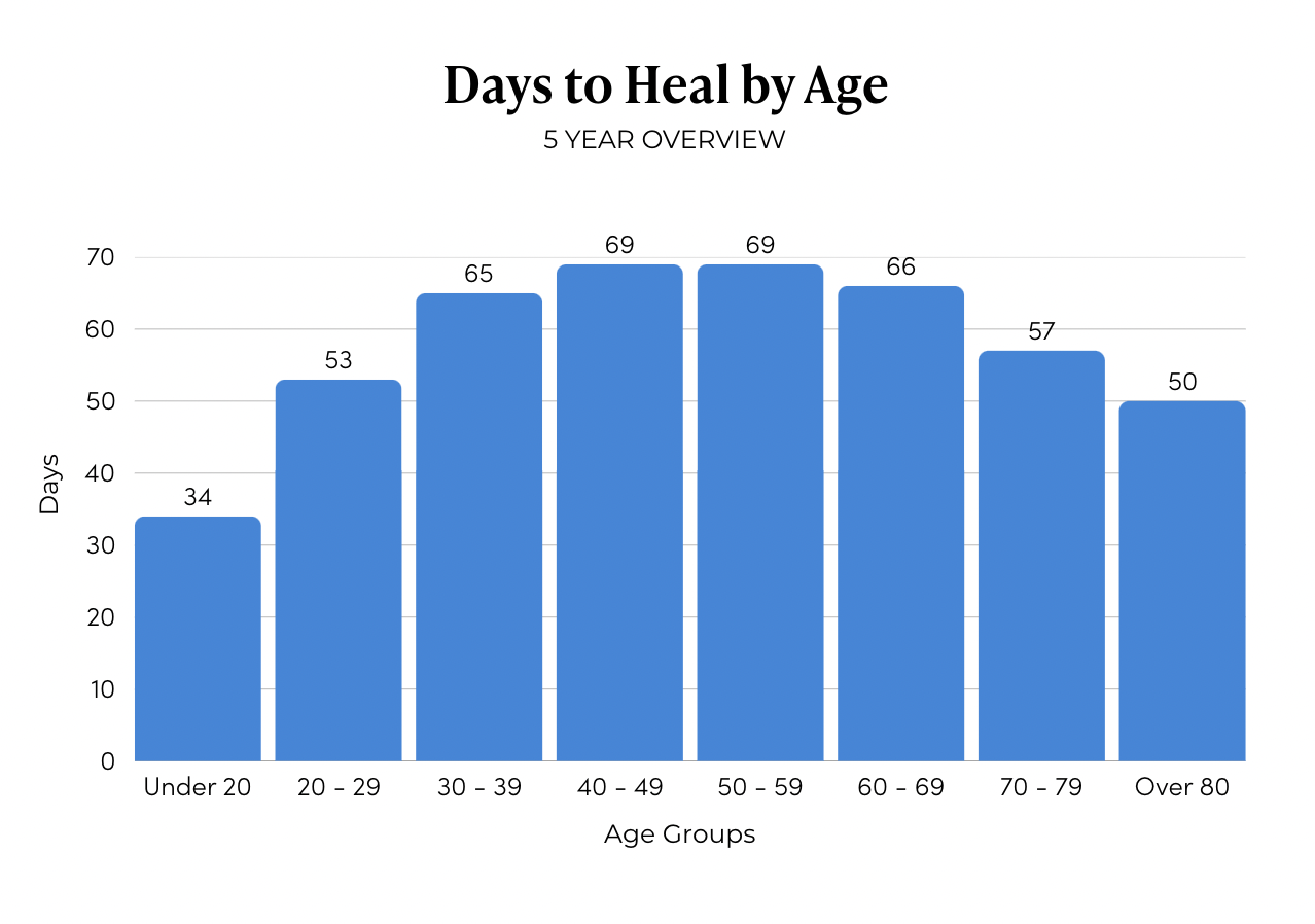 With over two decades in wound care, WCA has access to a significant depth of data, which allows us to look beyond assumptions and focus on real trends. One data point caught us off guard: healing rates among different age groups. You’d expect older patients to heal more slowly—and often, they do. But over the past five years, our data tells a different story. The slowest healing patients aren’t the oldest. They’re between the ages of 40 and 60, still several years shy of the national retirement age of 62.