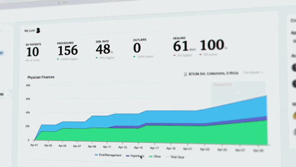 No more waiting on end-of-month reports. MyLuvo puts the metrics that matter right at your fingertips. Outcomes, healing rates, debridements—everything you need to track center performance and plan ahead. Know what’s coming before it hits with predictive reports. Patient volume, collections, visits, revenue, and admissions are a click away.
